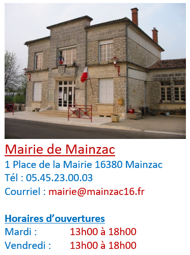 Petite commune de Charente de 125 âmes (2022), Mainzac est située à 30 Km au Sud Est d’Angoulême en limite avec le Département de la Dordogne.